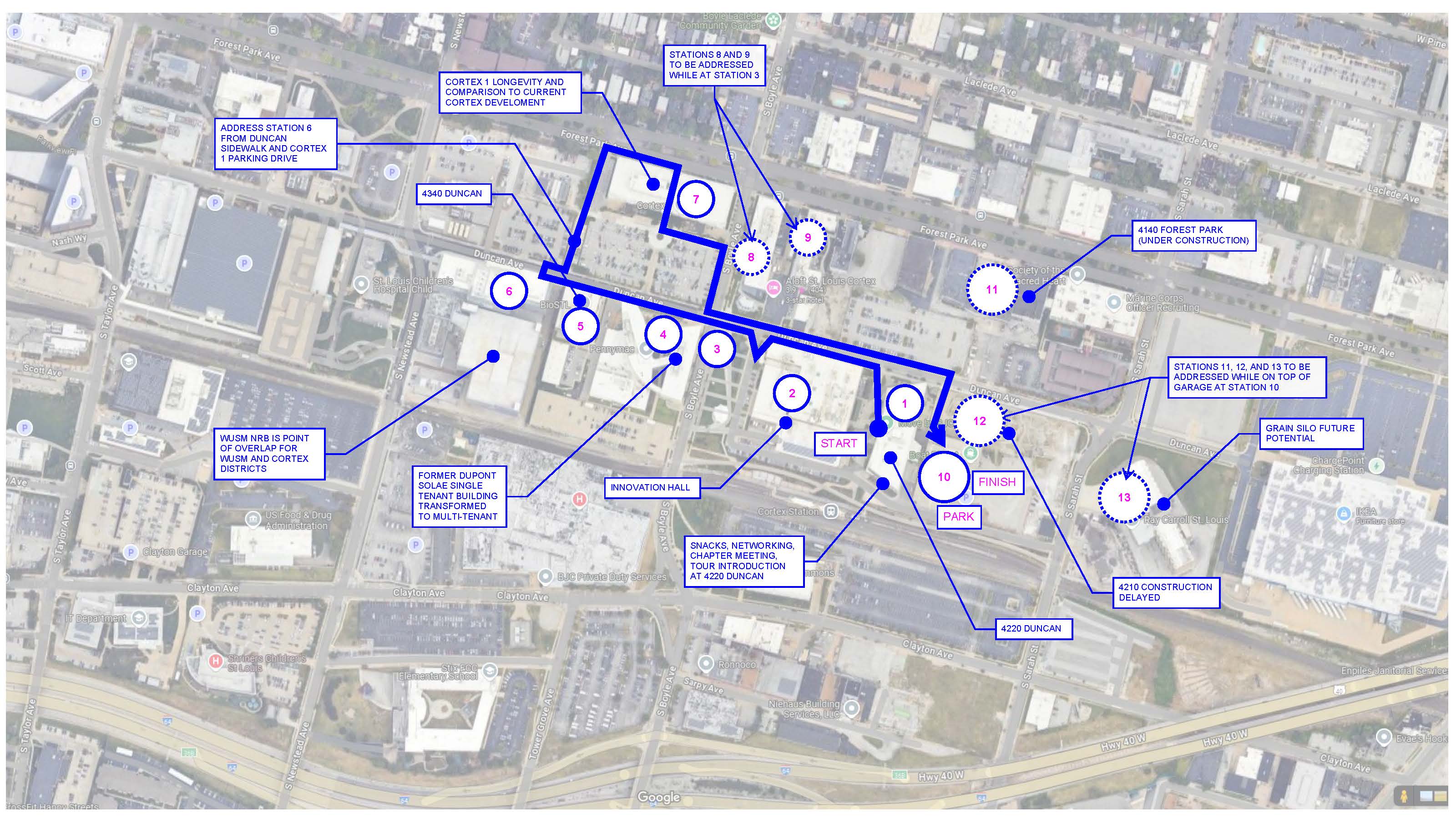 Attendees will experience an in-person walking tour of the Cortex StL Innovation District led by a leading Designer of several development defining projects. A proud member of the Global Institute of Innovation Districts (GIID), Cortex fuels St. Louis' growth as a vibrant and inclusive innovation hub, creating equitable economic impacts through high-quality facilities, diverse programs that enhance knowledge and networking, and strategic partnerships that support both emerging and established companies. Attendees will learn about planning strategies and architectural challenges involved with transforming a historically industrial neighborhood into vibrant and diverse innovation district. Additionally, attendees will hear first hand from the Constructor of many of the developments projects of the challenges and opportunities involved with historic masonry building renovation and restoration. The tour route is mostly flat with several gentle inclines on sidewalks or paved surfaces.
